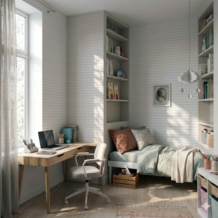 Un espacio de trabajo que refleja los valores de la marca no es un lujo. Es una decisión estratégica. El papel tapiz en oficinas sirve para reforzar identidad corporativa, mejorar la acústica en algunos casos y crear ambientes que favorecen la concentración o la creatividad según la zona. Una sala de juntas con una pared de textura elegante comunica solidez. Un área colaborativa con colores y patrones dinámicos incentiva el movimiento y la interacción.